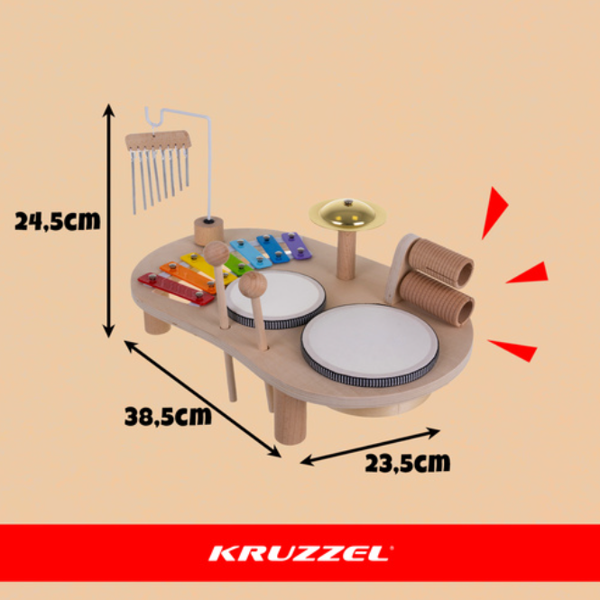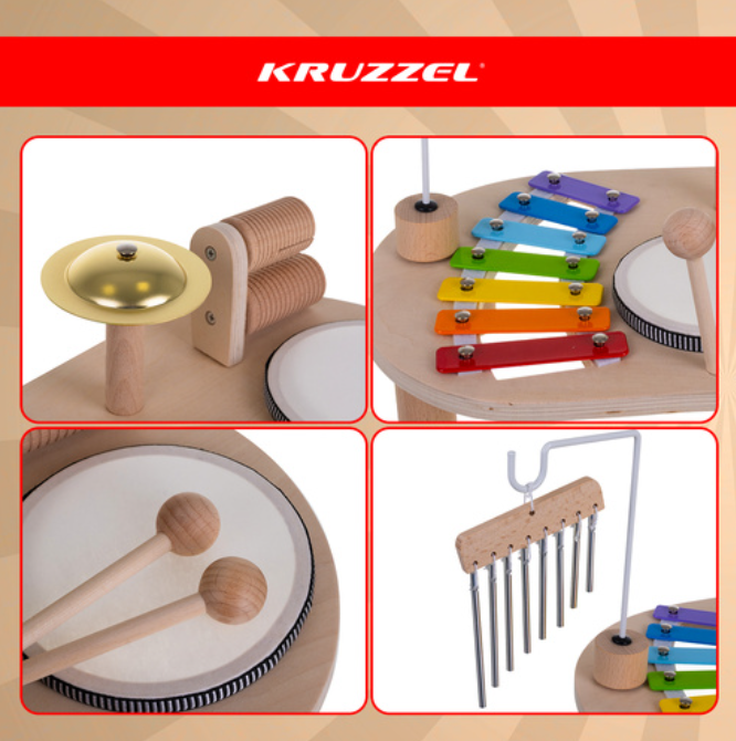 Šis medinis edukacinis muzikinis staliukas su cimbolais, būgnais ir barškučiais – tai ne tik žaislas, bet ir vertingas ugdymo įrankis, kuris lavina mažylio pojūčius, kūrybiškumą ir motoriką. Sukurtas pagal Montessori principus, jis skatina savarankišką tyrinėjimą, garsų atpažinimą ir muzikinį ritmą – viskas natūraliai ir žaismingai.